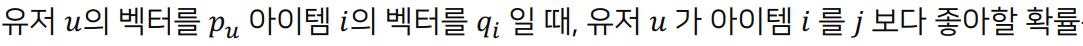 또, user가 item j보다 item i를 선호할 확률은 아래와 같이 정의된다.