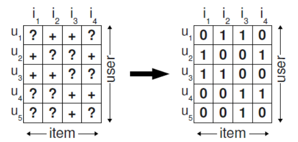 위와 같은 기존의 방식에서는 missing value을 negative feedback으로 간주한다. 즉, 관측되지 않아 비어있는 값을 0으로 채워넣어 사용했다는 것이다. 이럴 경우 미래에 user가 선호할 수 있을 가능성까지 무시한 것으로 볼 수 있어서 예측이 부정확해질 가능성이 있게 된다.
