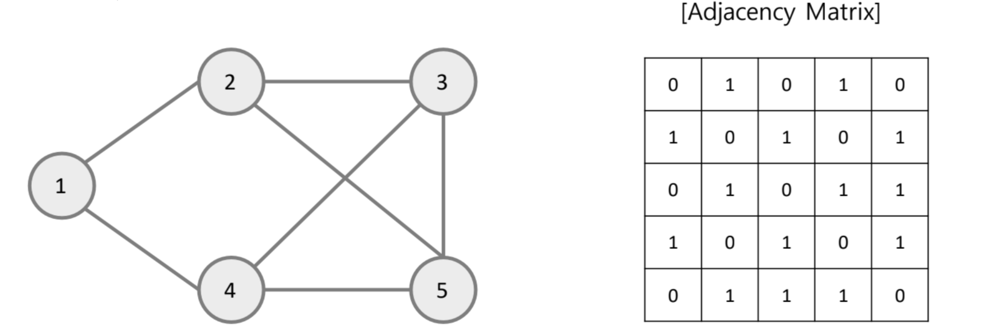즉, 행렬로 표현했을 때 그림 우측의 행렬과 같이 edge로 연결된 모든 node에 대해서 연결되기만 하면 1로 표현되므로, Symmetric한 행렬로 구성된다.